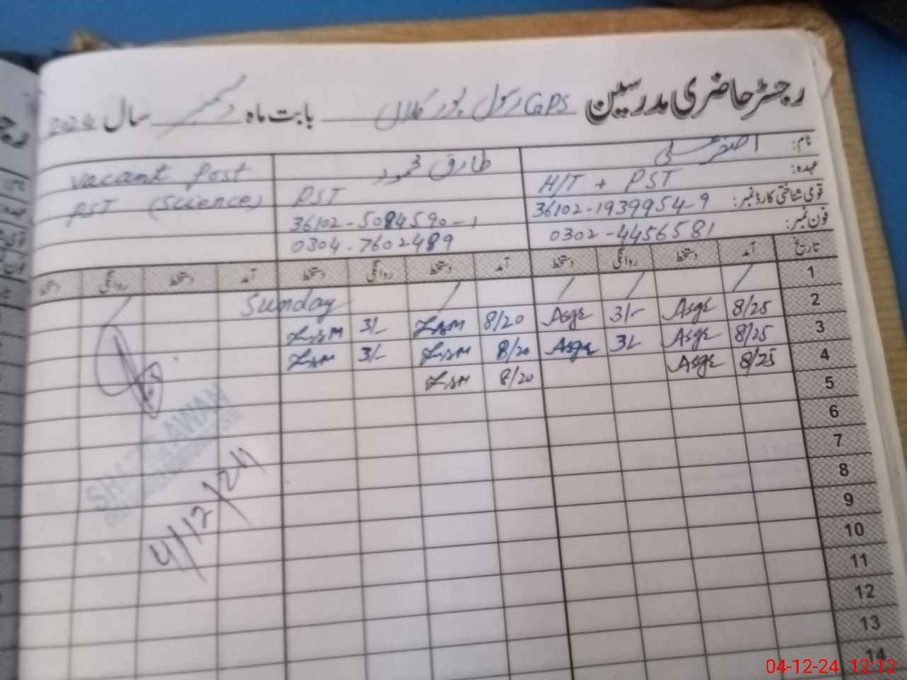 | Name: As**** Al**** Designation: (School Headmaster's/Headmistress's) PST Phone/Cell Number: 03**** |