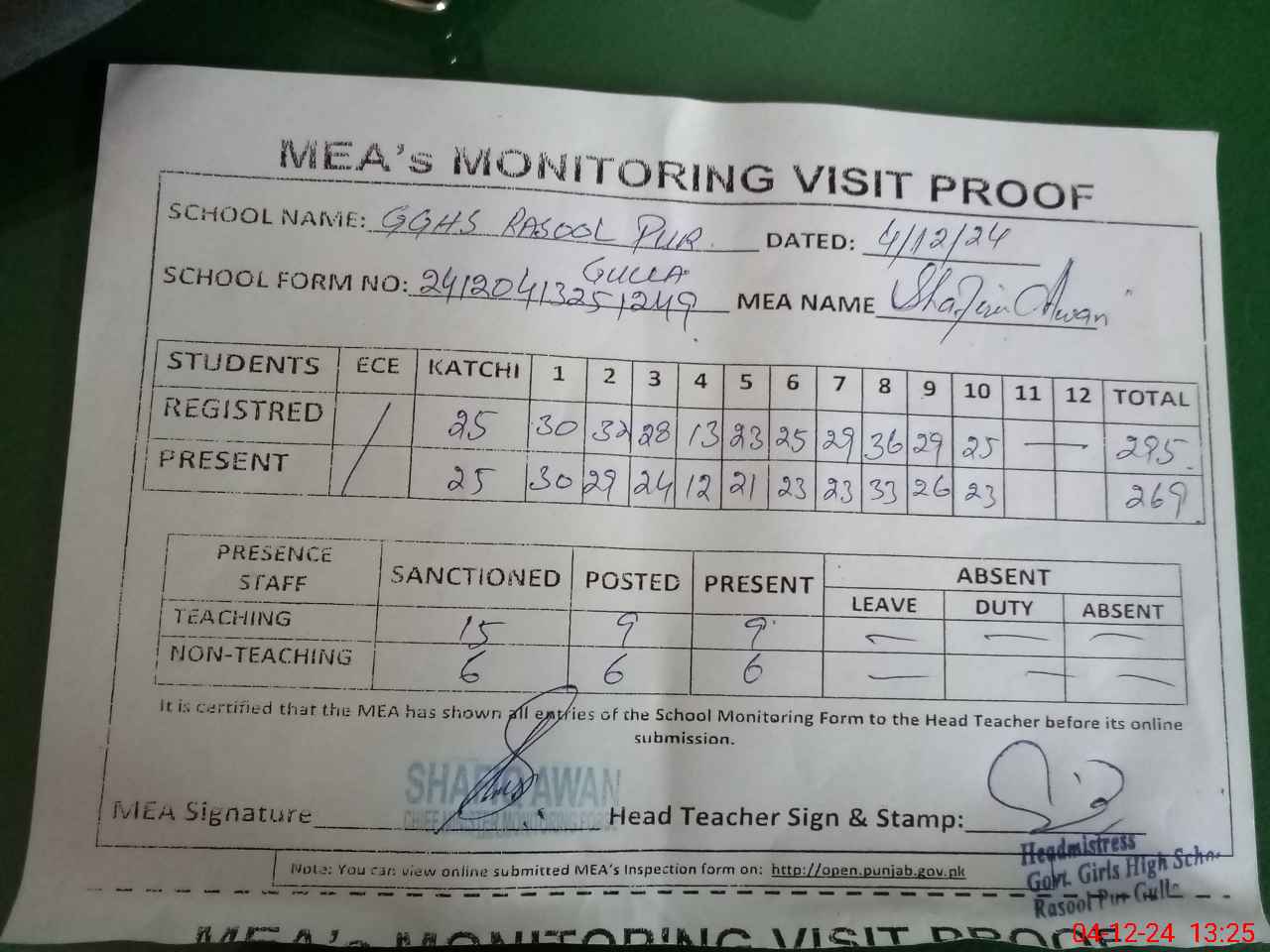 | EMIS Code: 36410494 | Name of School: GGHS RASOOL PUR GULLA, NAWAN SHEHR | |||