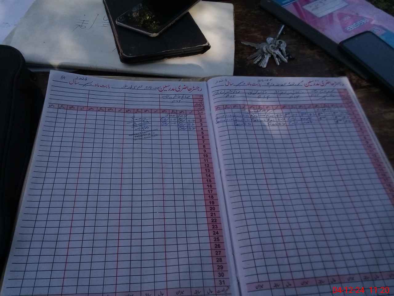 | CNIC | Full Name | Designation | R/C | Absence During Last Calender Month |