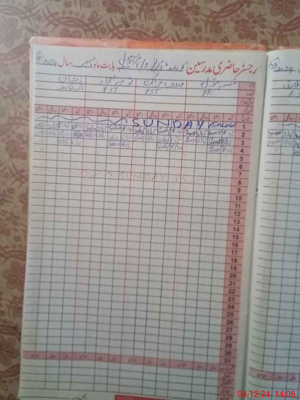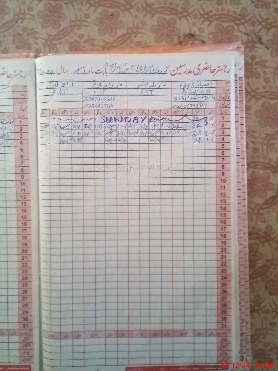 | CNIC | Full Name | Designation | R/C | Absence During Last Calender Month |