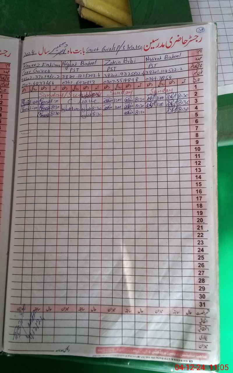 | Name: NU**** BA**** Designation: (School Headmaster's/Headmistress's) PST Phone/Cell Number: 03**** |