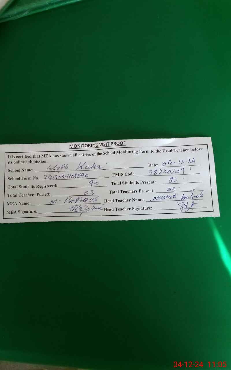 | EMIS Code: 38220209 | Name of School: GGPS KAKA | |||