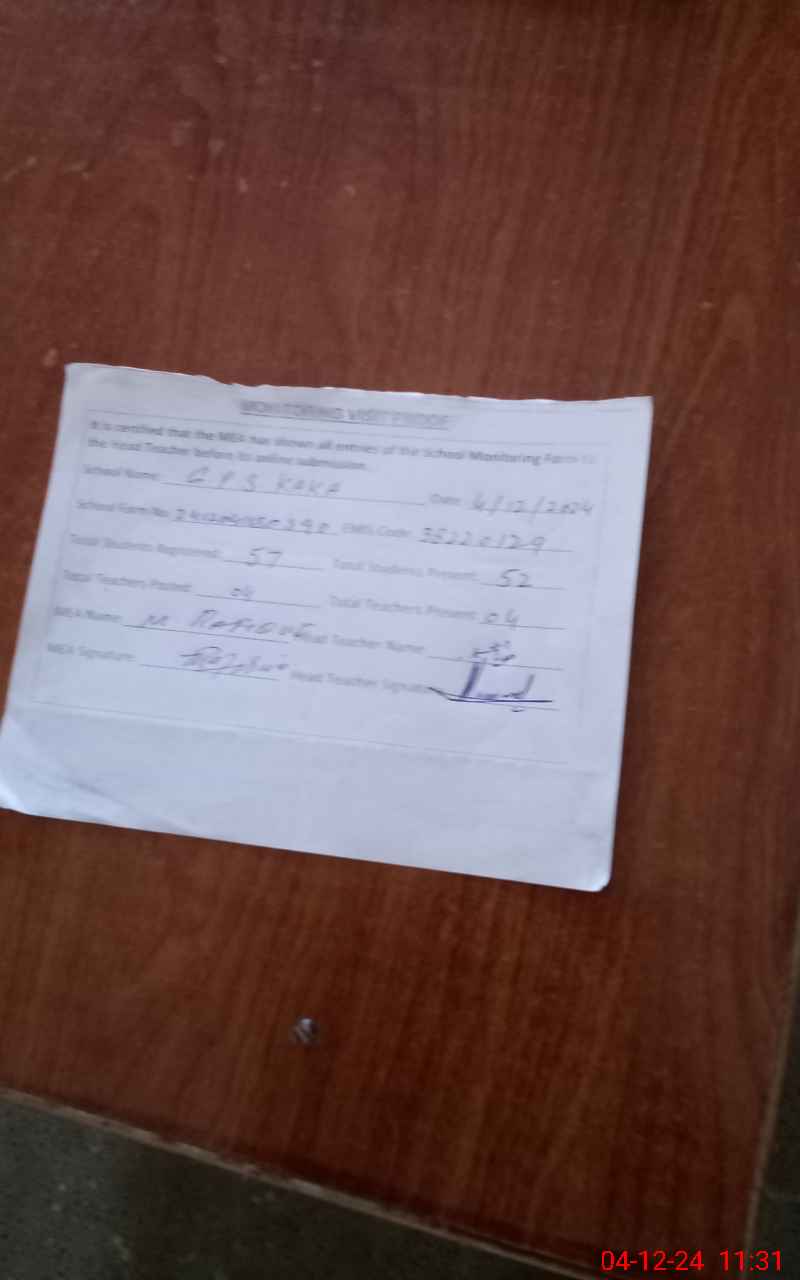 | EMIS Code: 38220129 | Name of School: GPS KAKA | |||
