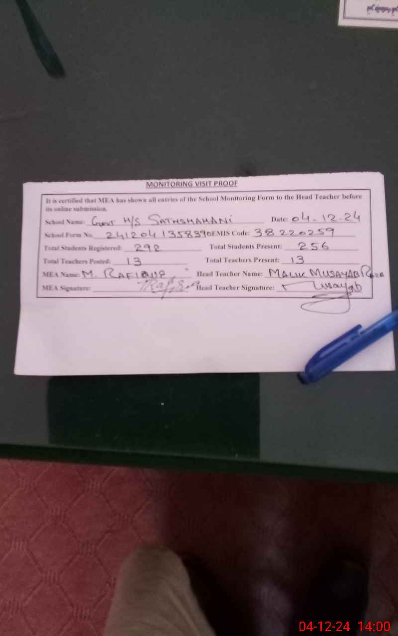 | EMIS Code: 38220259 | Name of School: GHS SATH SHAHANI | |||