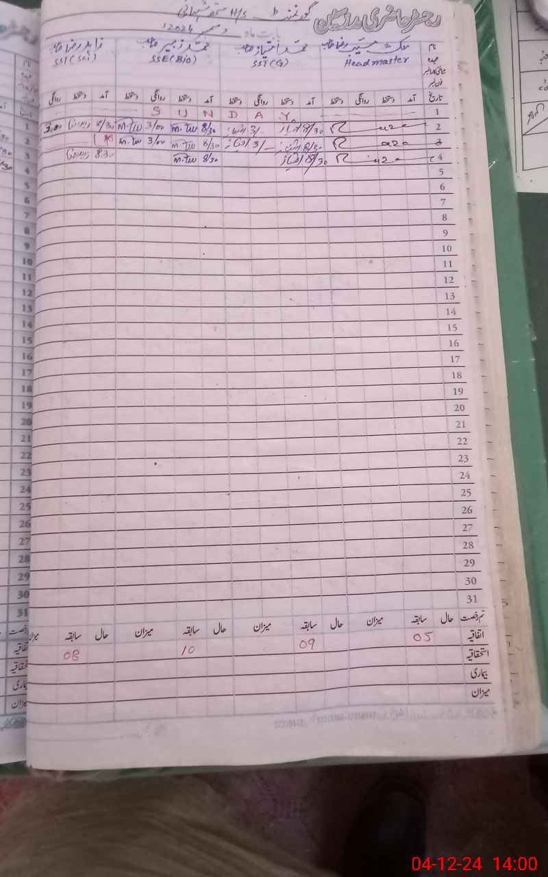 | CNIC | Full Name | Designation | R/C | Absence During Last Calender Month |