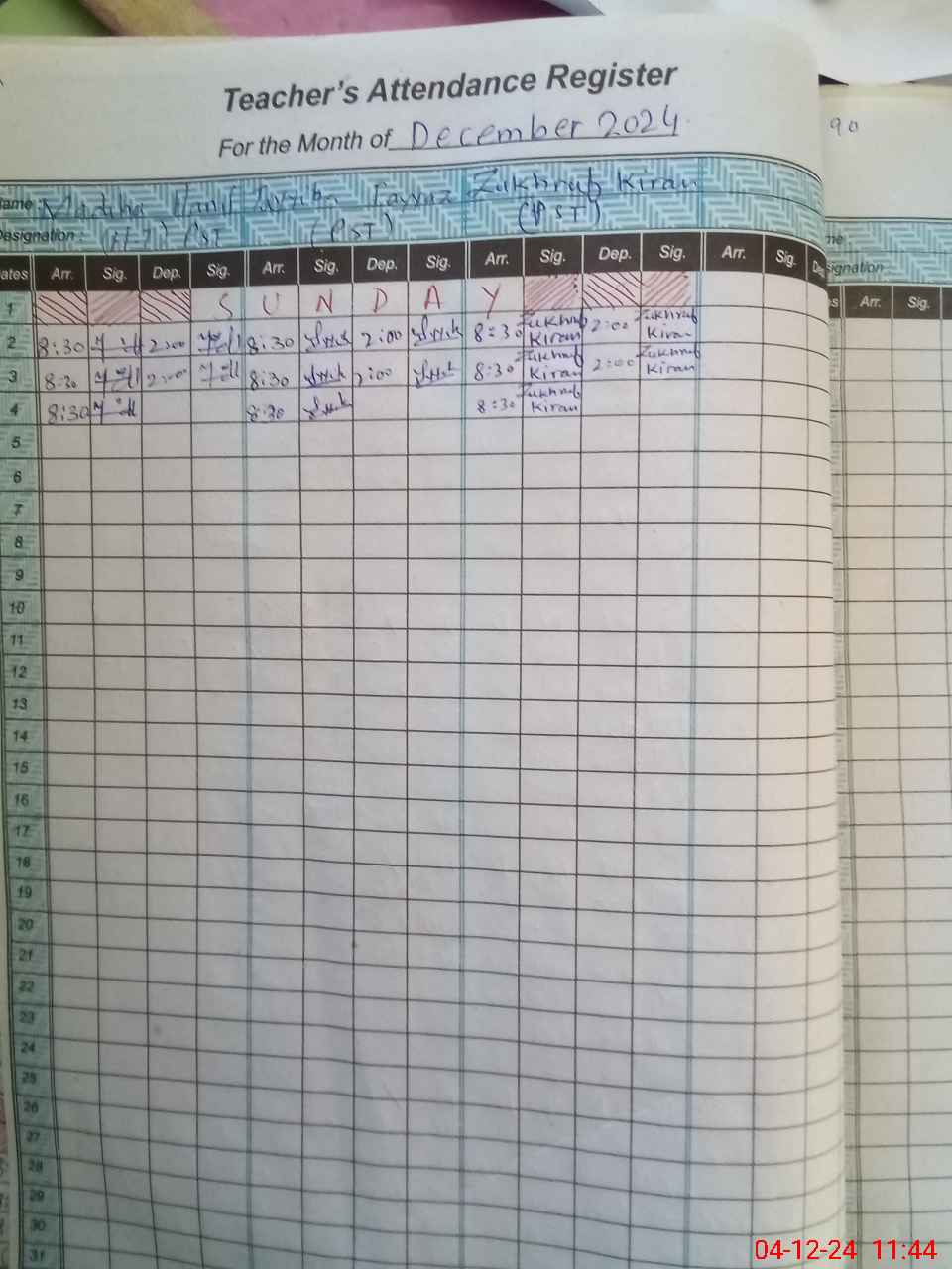 | CNIC | Full Name | Designation | R/C | Absence During Last Calender Month |