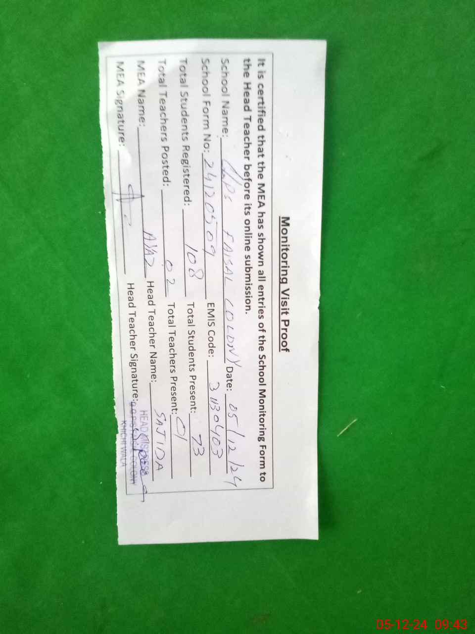 | EMIS Code: 31130403 | Name of School: GGPS FAISAL COLONY | |||