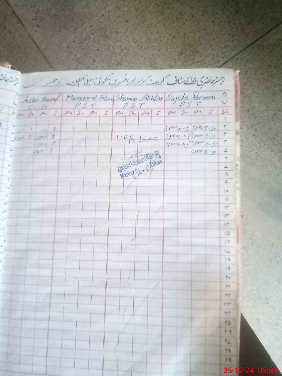 | Remarks (Use Separate Page if Required): Pst Musarrat absent as no valid documents of her medical leave | |||||