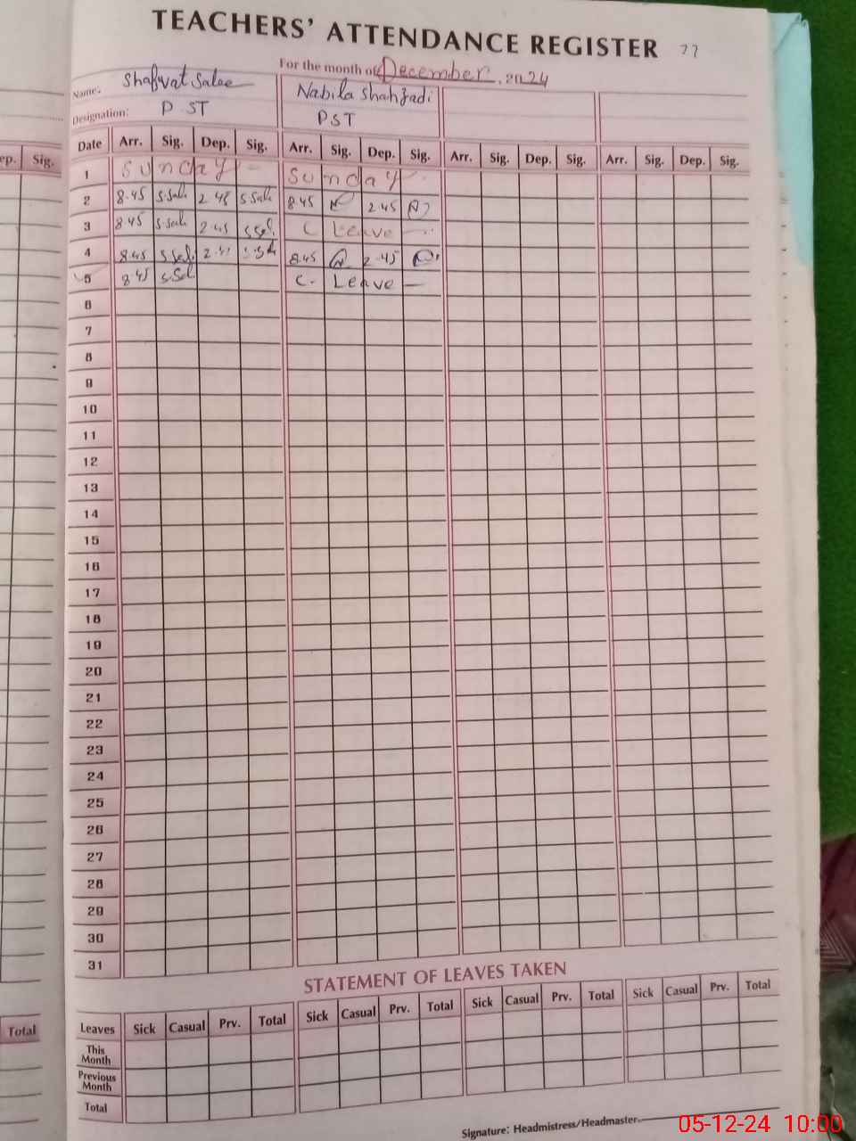 | Name: SH**** SA**** Designation: (School Headmaster's/Headmistress's) PST Phone/Cell Number: 03**** |