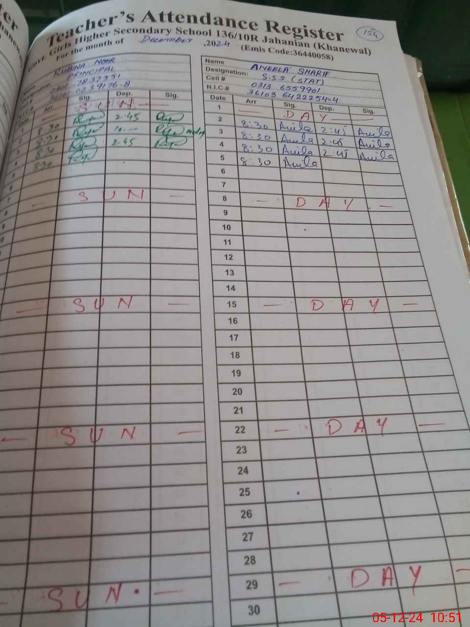 | CNIC | Full Name | Designation | R/C | Absence During Last Calender Month |