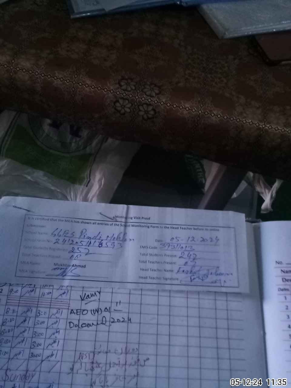 | EMIS Code: 39311013 | Name of School: GGES CHAK PINDI MOHLAN | |||