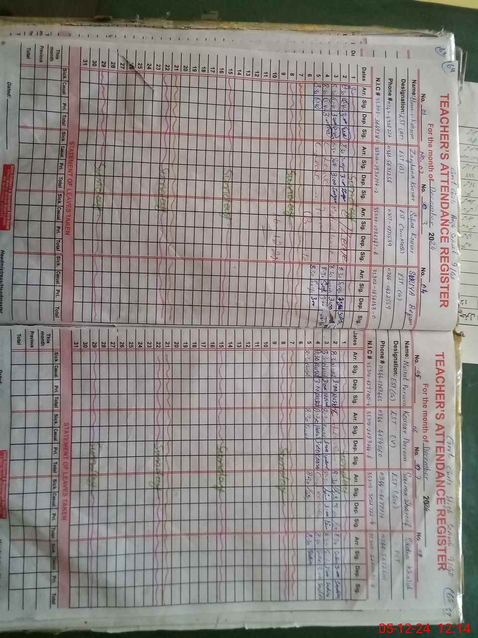 | Name: Um**** Ka**** Designation: (School Headmaster's/Headmistress's) EST Arebic Phone/Cell Number: 03**** |
