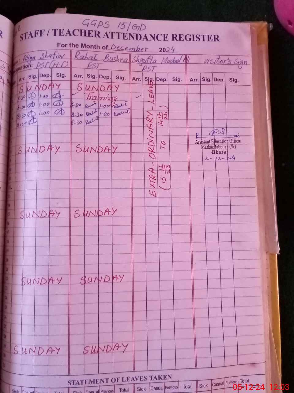 | Leave | Duty | Absent | Maternity | Medical | Ex- Pak |