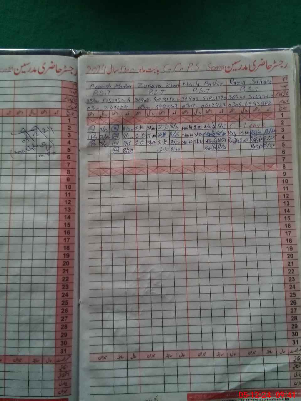 | Name: Zu**** Kh**** Designation: (School Headmaster's/Headmistress's) PST Phone/Cell Number: 03**** |