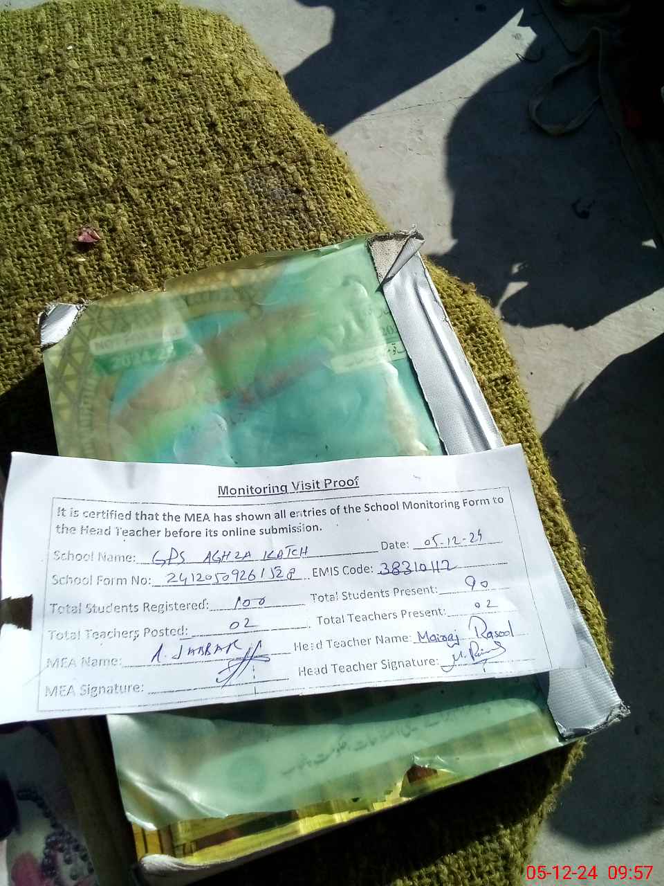 | EMIS Code: 38310112 | Name of School: GPS AGHZA KACH | |||