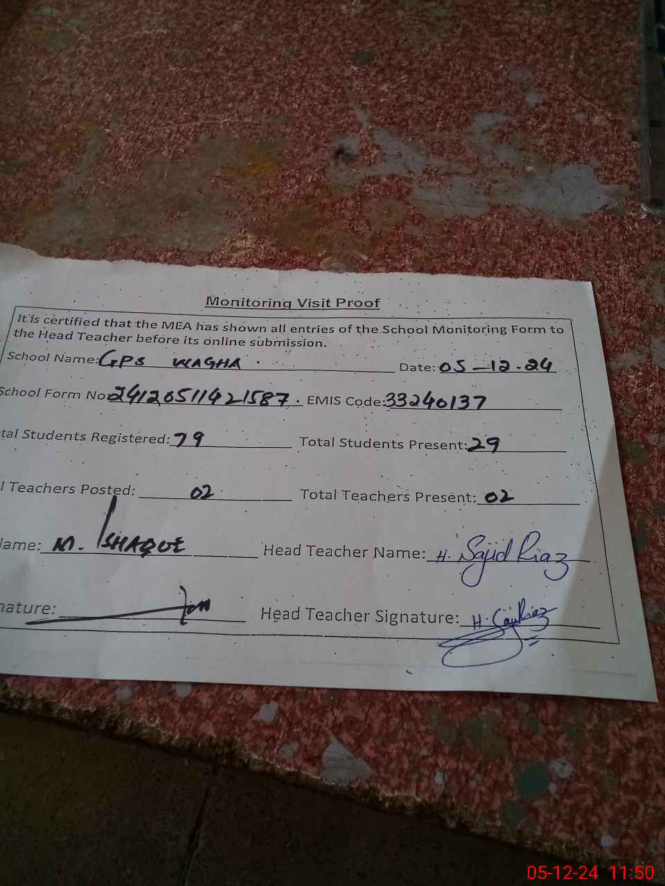 | EMIS Code: 33240137 | Name of School: GPS WAGHA | |||