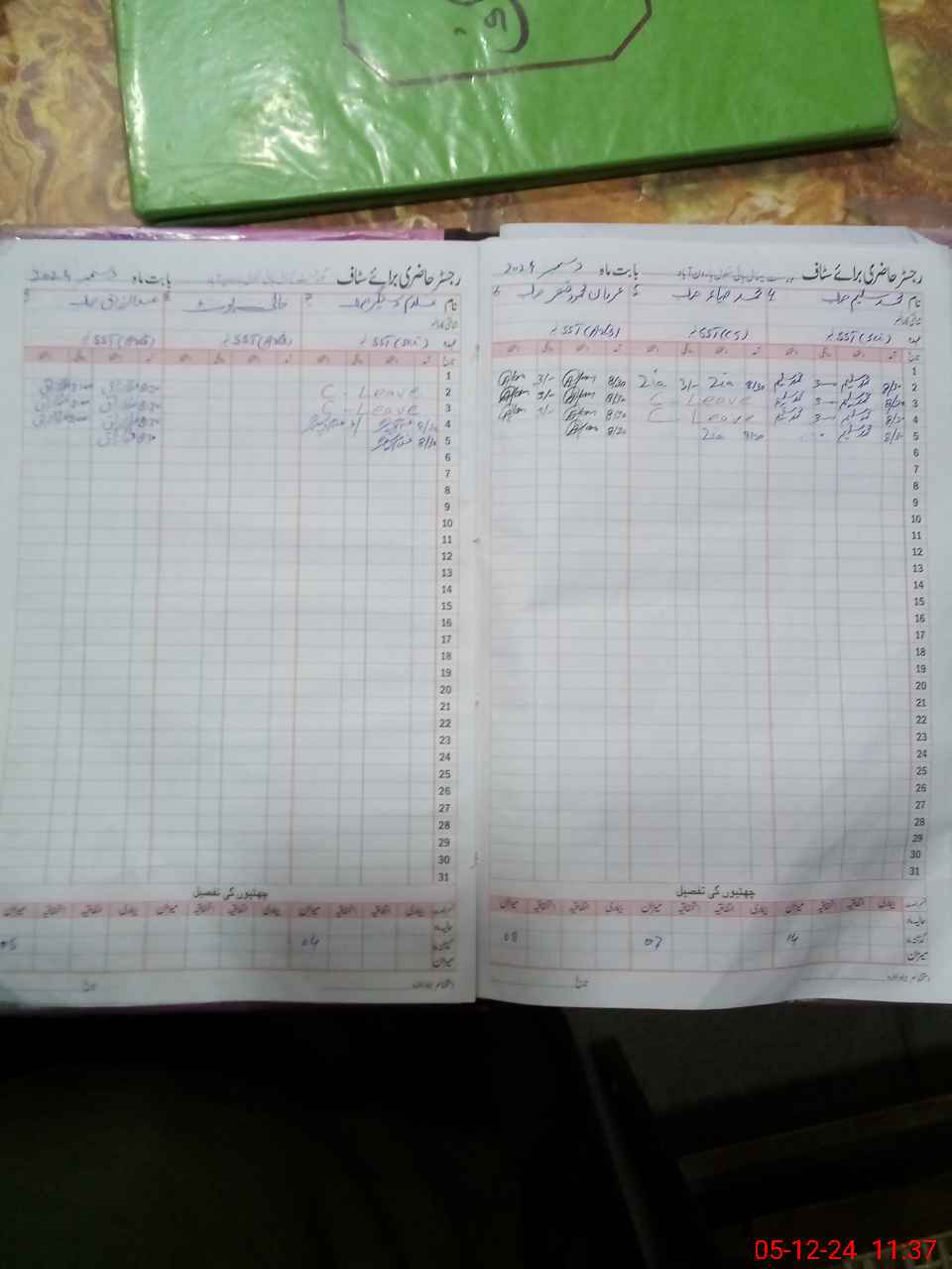 | CNIC | Full Name | Designation | R/C | Absence During Last Calender Month |