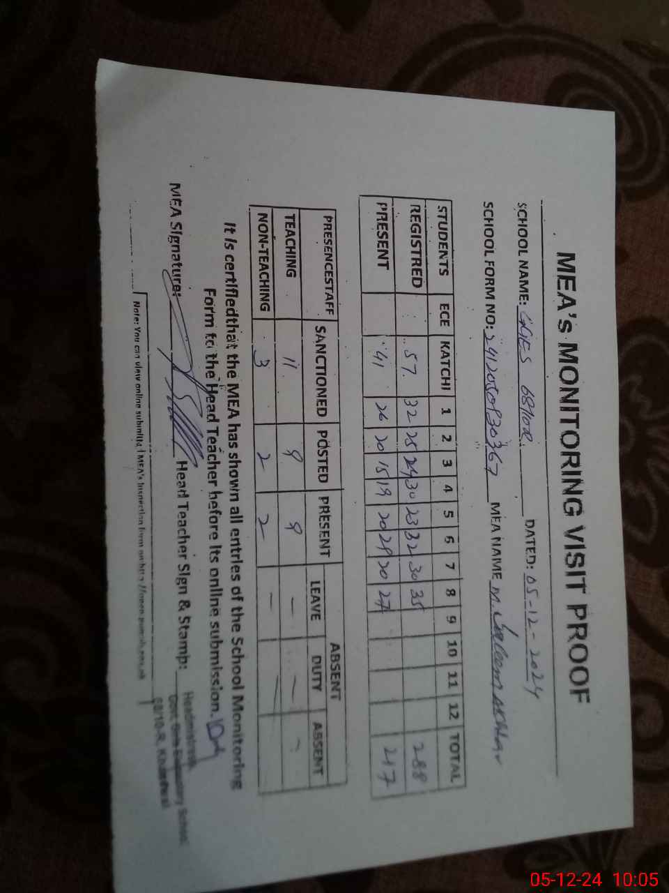 | Certified that this School was Inspected by the Undersigned MEA/DMO Today and the Information Stated Above is as Per Record. | |||||