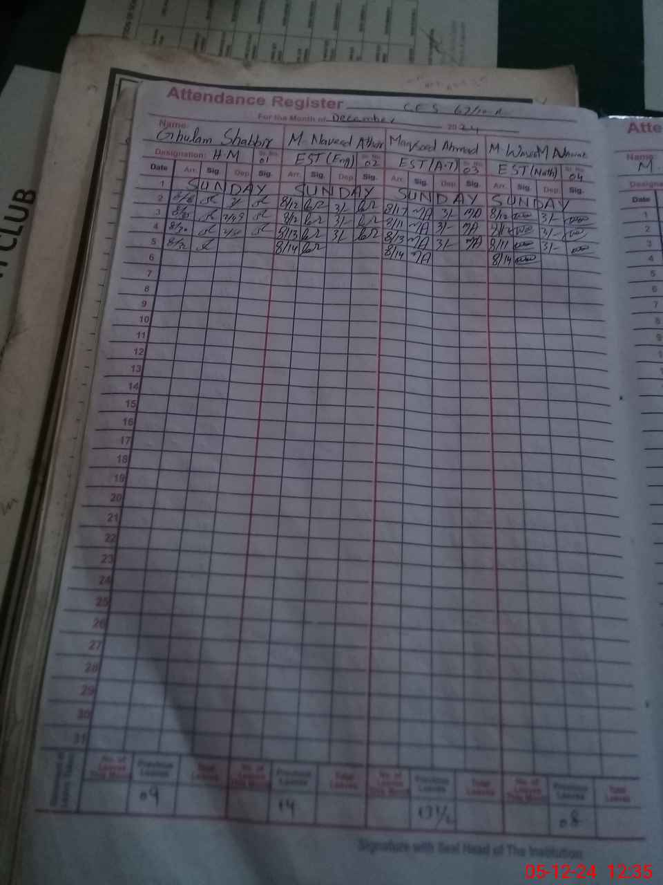 | CNIC | Full Name | Designation | R/C | Absence During Last Calender Month |