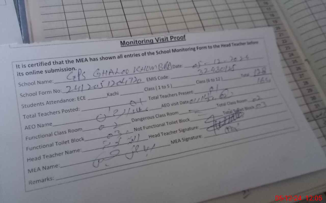 | EMIS Code: 32430125 | Name of School: GPS GHALLO KHUMBRA | |||