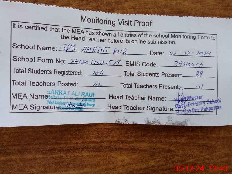 | EMIS Code: 39210456 | Name of School: GPS HARDIT PUR | |||
