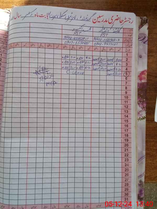 | Name: Ka**** Ni**** Designation: (School Headmaster's/Headmistress's) PST Phone/Cell Number: 03**** |