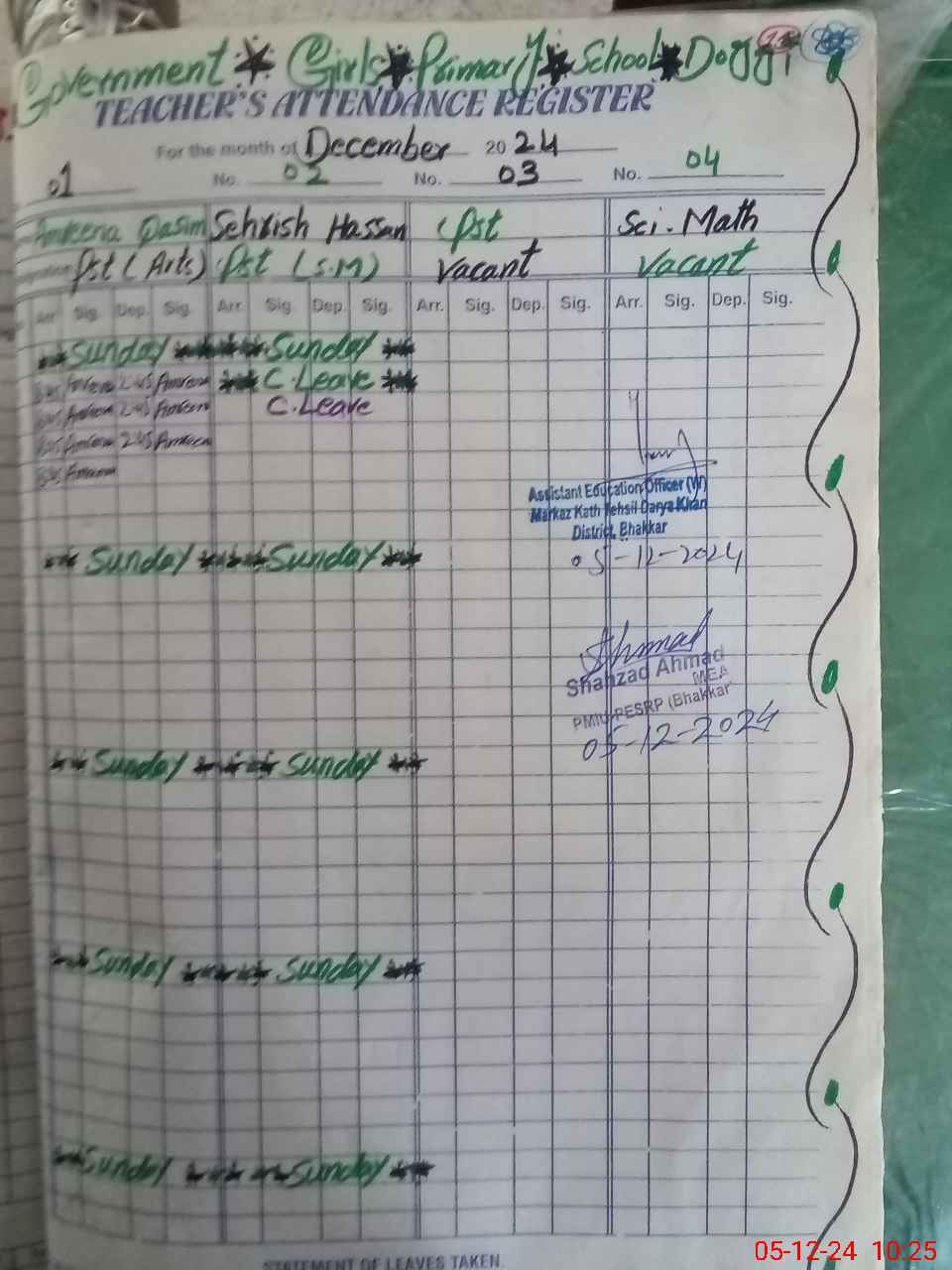 | District: BHAKKAR | Tehsil: DARYA KHAN | Markaz: KATH - FEMALE | Level: Primary | |