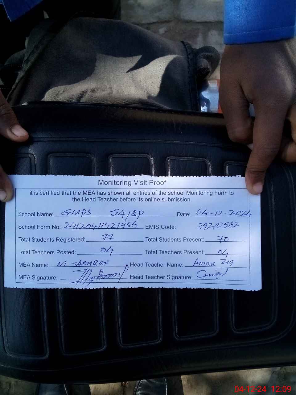 | EMIS Code: 39210562 | Name of School: GMPS 54/SP | |||