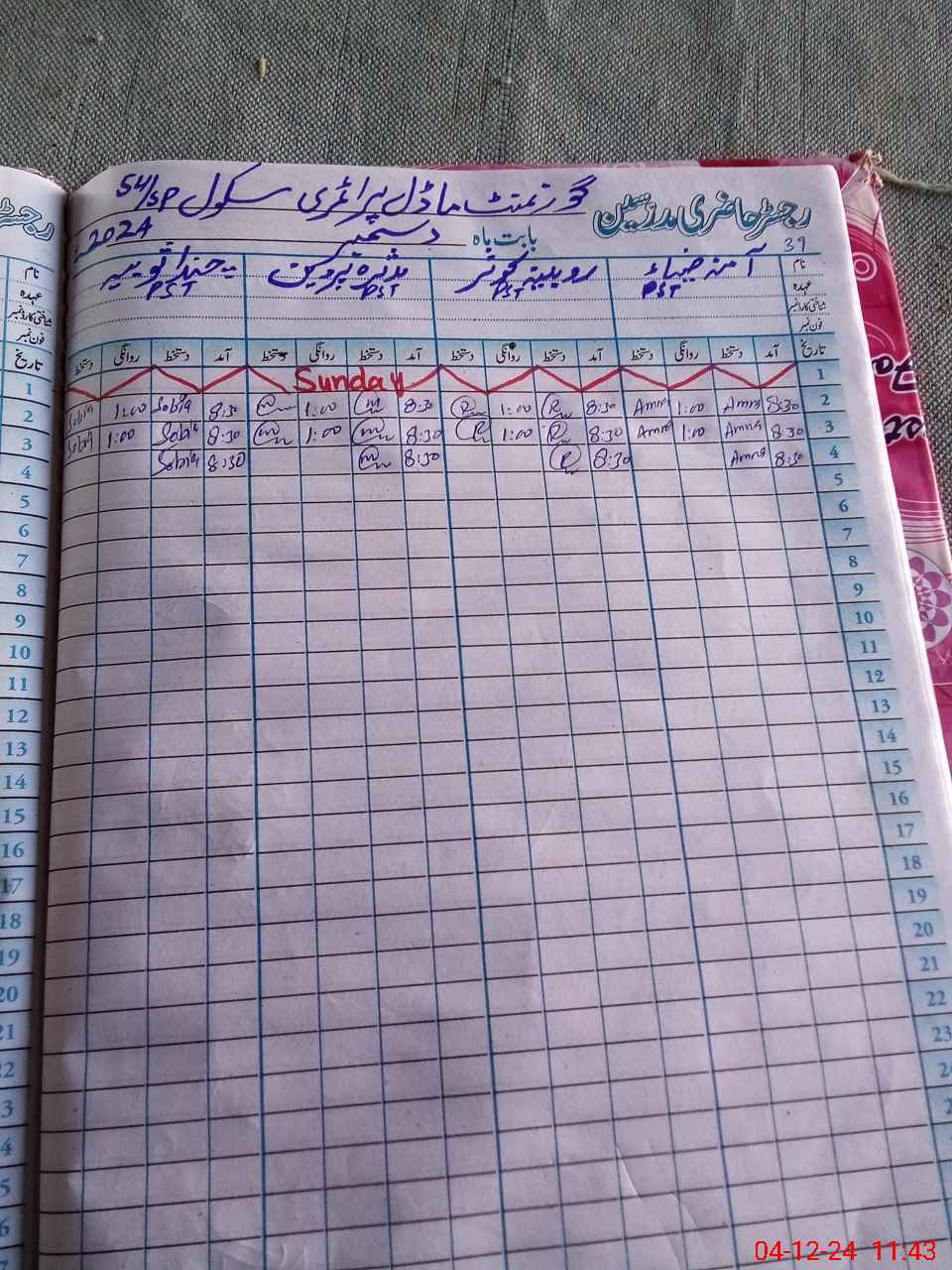 | District: PAKPATTAN | Tehsil: PAKPATTAN | Markaz: CHAKBEDI 4 - FEMALE | Level: Primary | |