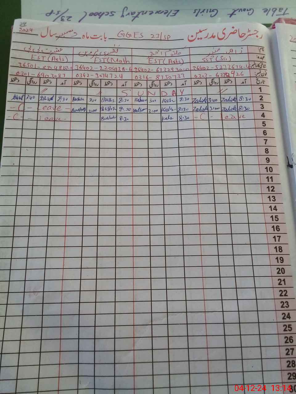 | Name: Za**** Mu**** Designation: (School Headmaster's/Headmistress's) SST Math Phone/Cell Number: 03**** |