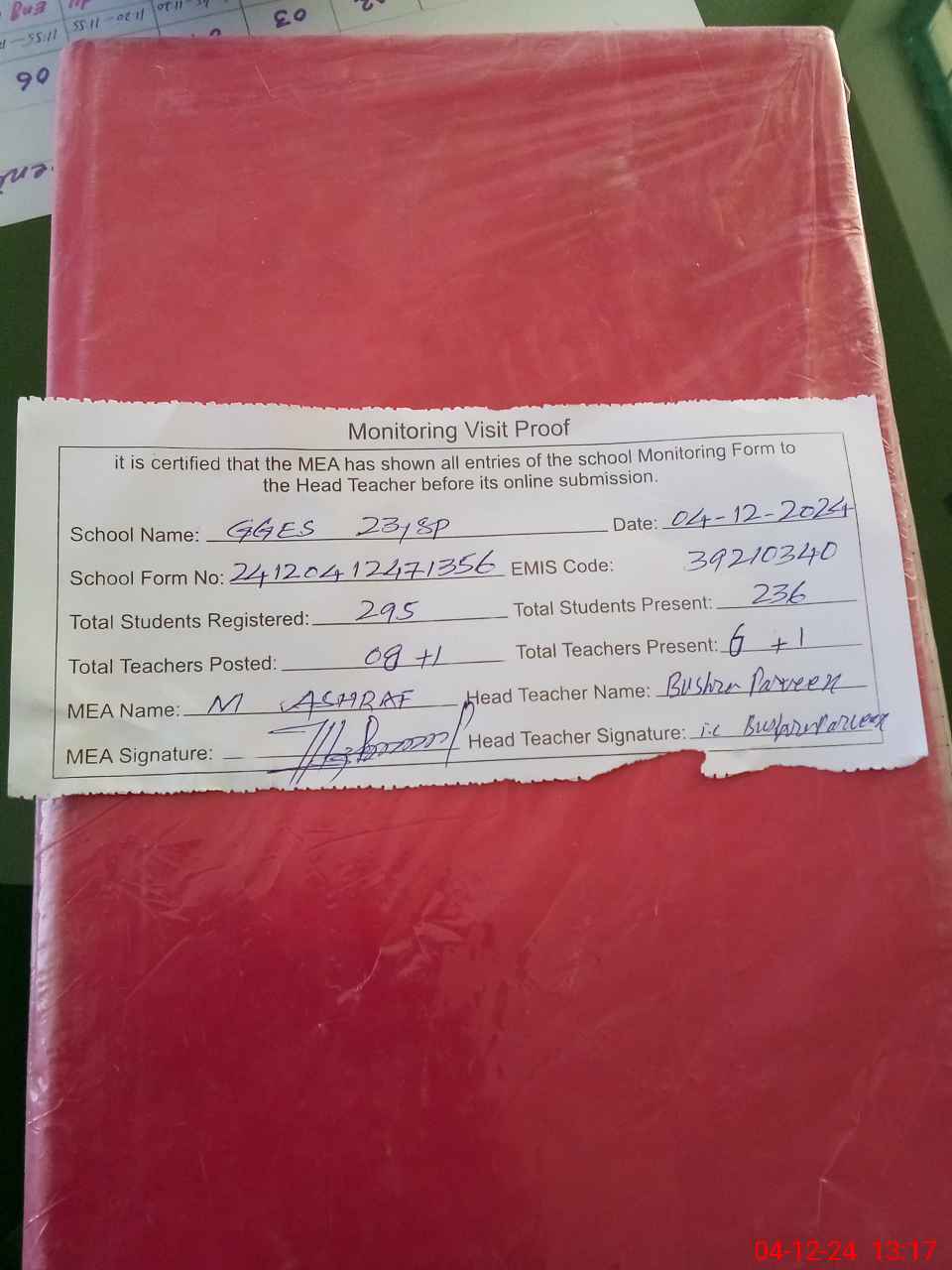 | EMIS Code: 39210340 | Name of School: GGES 23 SP | |||