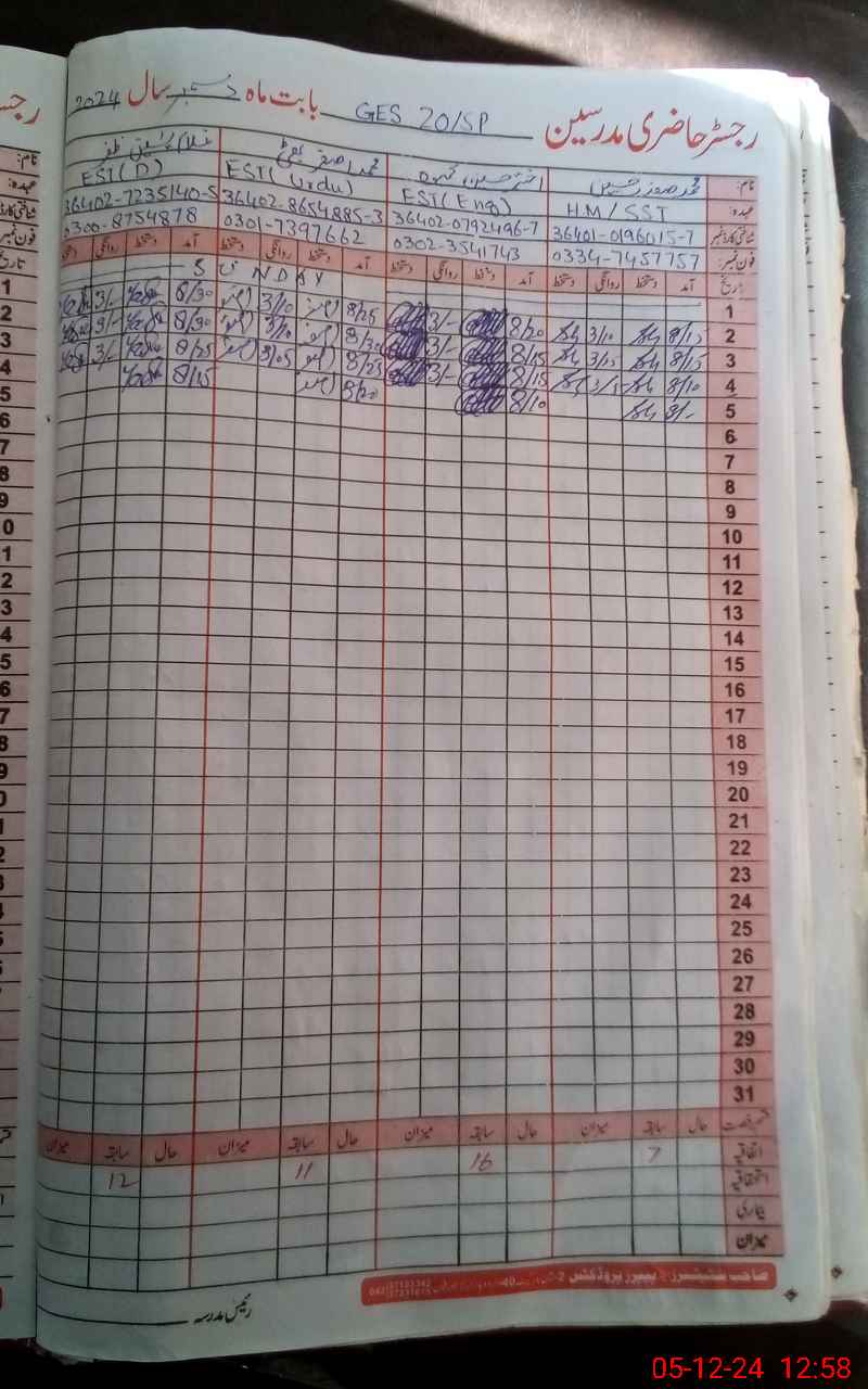 | Name: MU**** SA**** HU**** Designation: (School Headmaster's/Headmistress's) SST GENERAL Phone/Cell Number: 03**** |