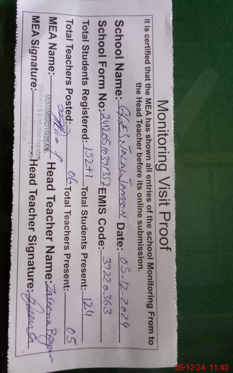 | EMIS Code: 39220363 | Name of School: GGES JALAL JAMMOON POST OFFICE MARI HAZARA | |||