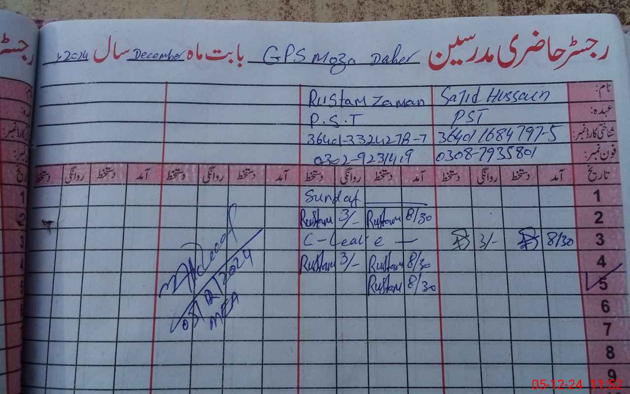 | Name: RU**** ZA**** Designation: (School Headmaster's/Headmistress's) PST Phone/Cell Number: 03**** |