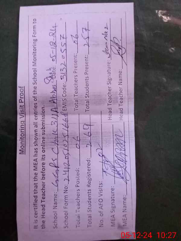 | EMIS Code: 31320557 | Name of School: GGPS CHAK 31/A ABBAS SHAH | |||