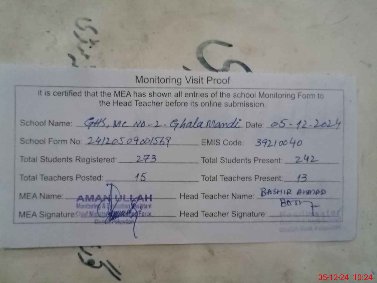 | EMIS Code: 39210040 | Name of School: GHS MC NO. 2 GHALLA MANDI | |||