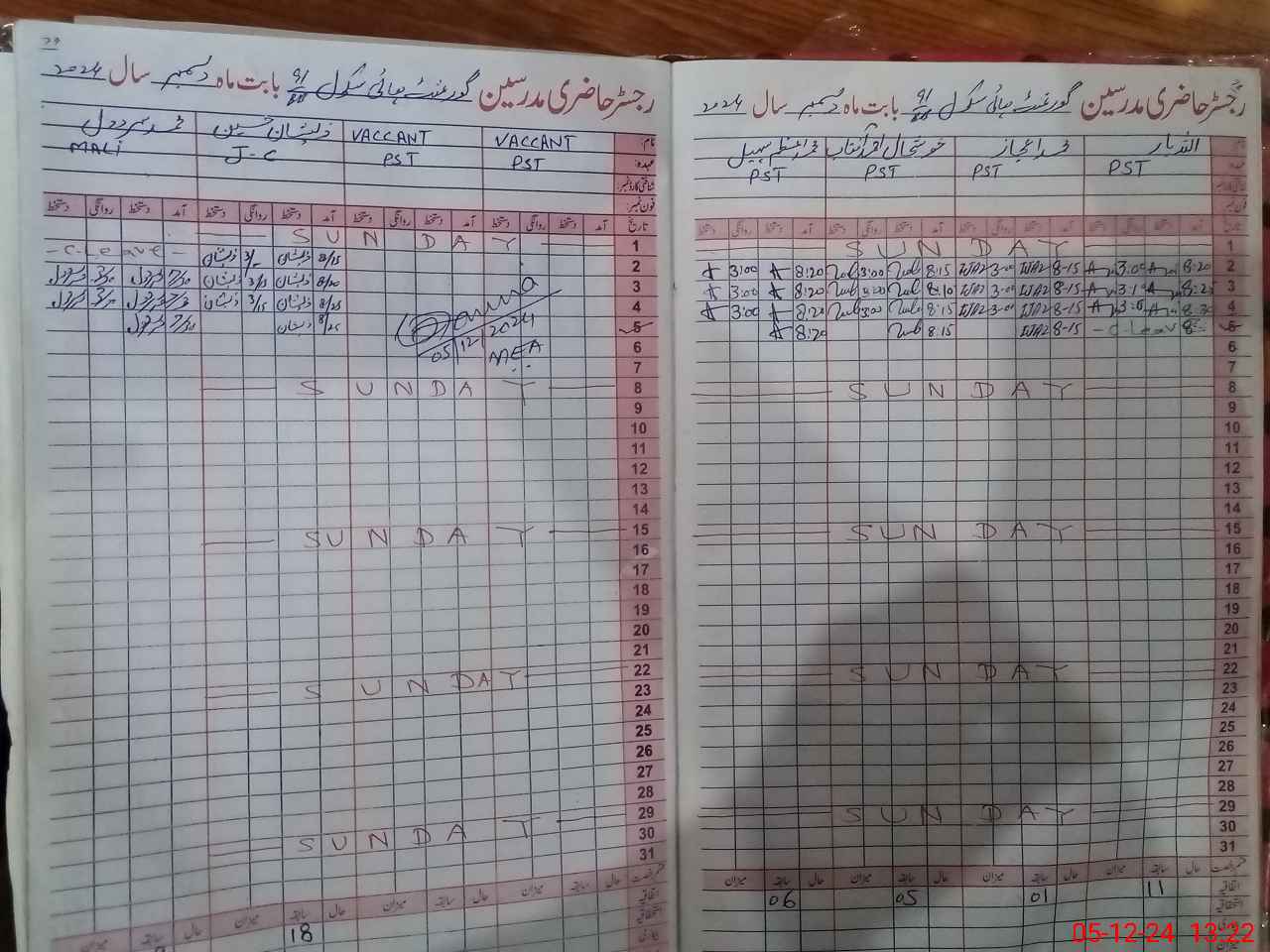 | CNIC | Full Name | Designation | R/C | Absence During Last Calender Month |