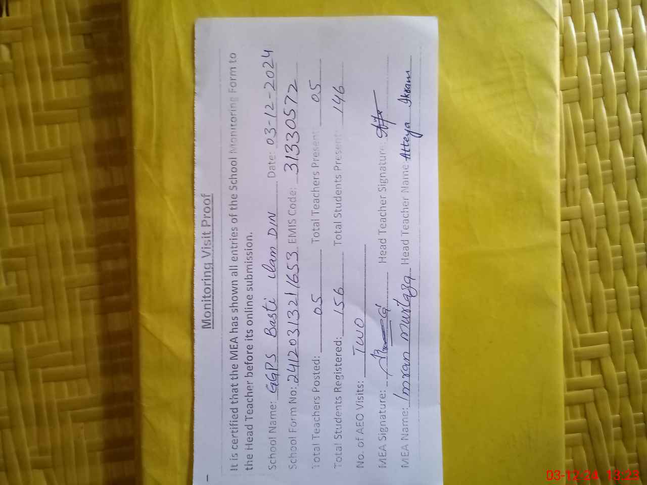 | EMIS Code: 31330572 | Name of School: GGPS BASTI ILAM DIN | |||