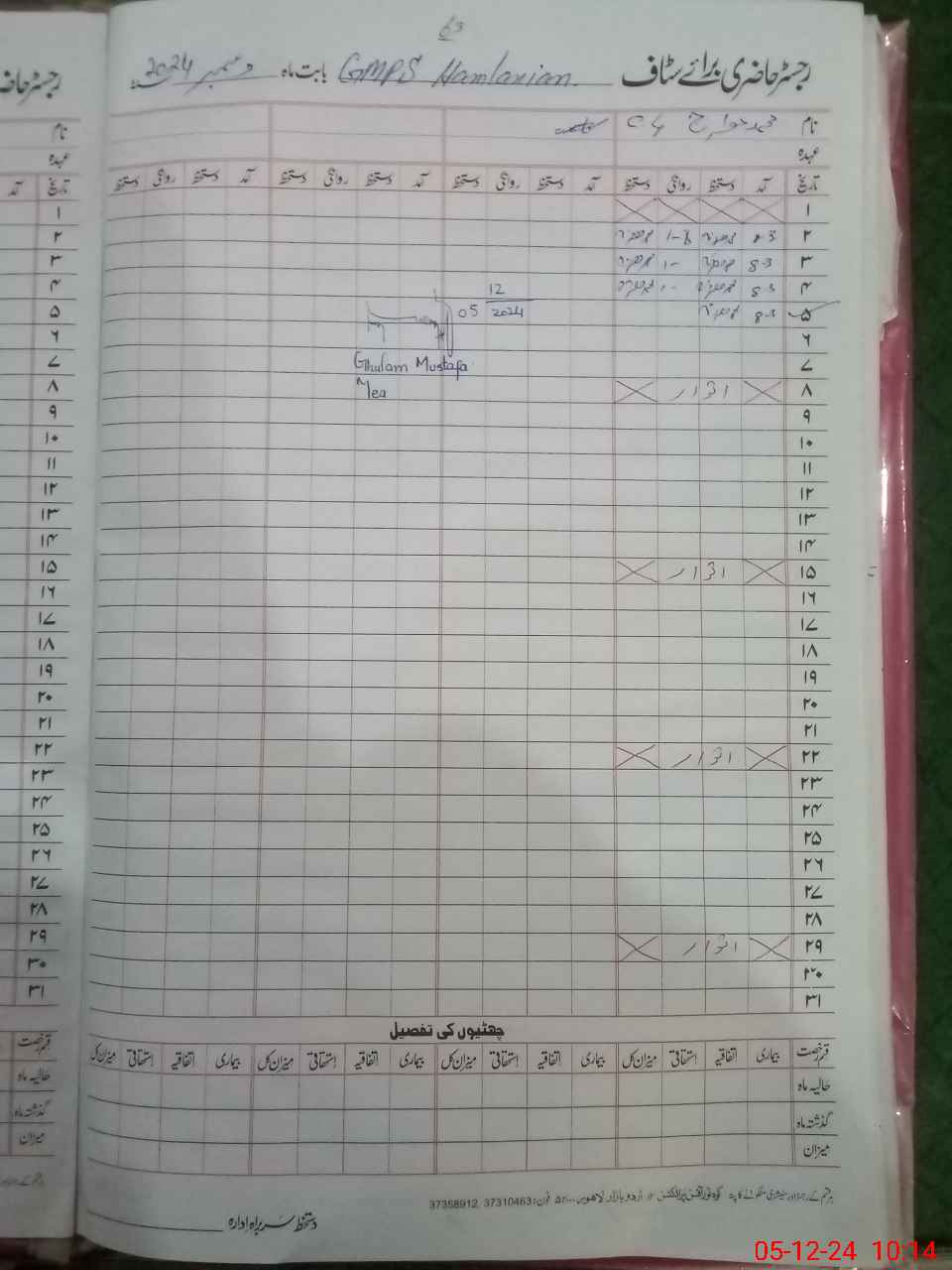 | CNIC | Full Name | Designation | R/C | Absence During Last Calender Month |