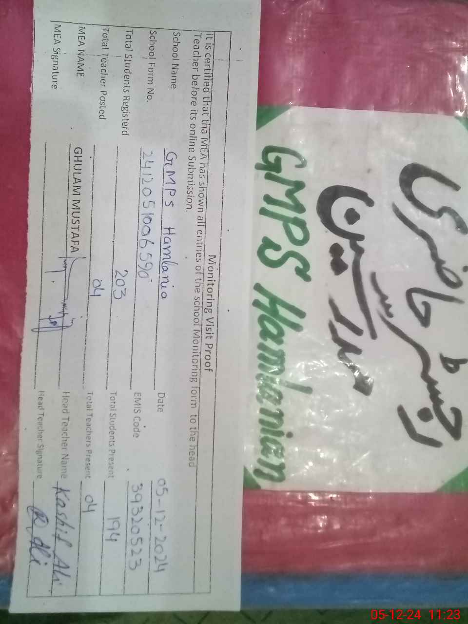 | EMIS Code: 39320523 | Name of School: GMPS HAMLANIA | |||