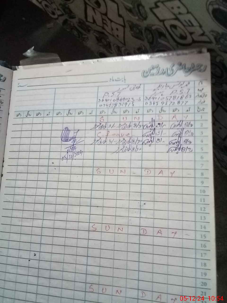 | CNIC | Full Name | Designation | R/C | Absence During Last Calender Month |