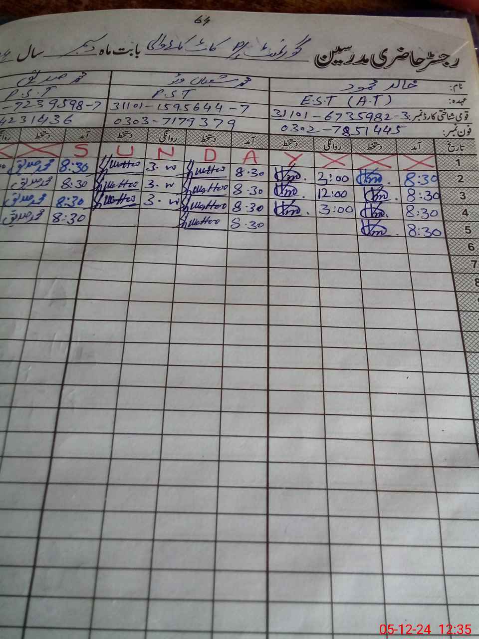 | CNIC | Full Name | Designation | R/C | Absence during last cal. month |