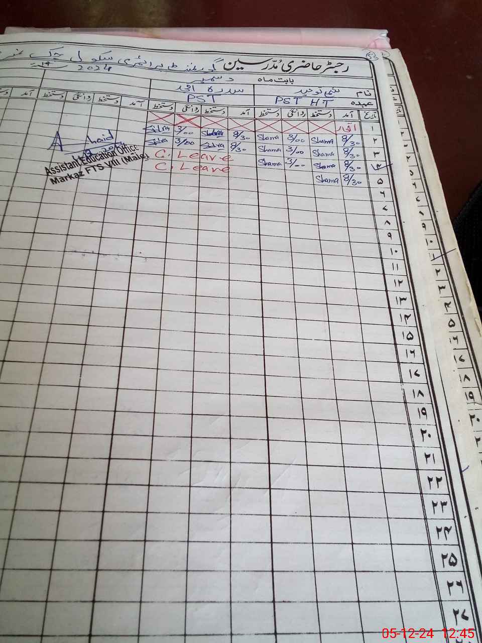| CNIC | Full Name | Designation | R/C | Absence During Last Calender Month |