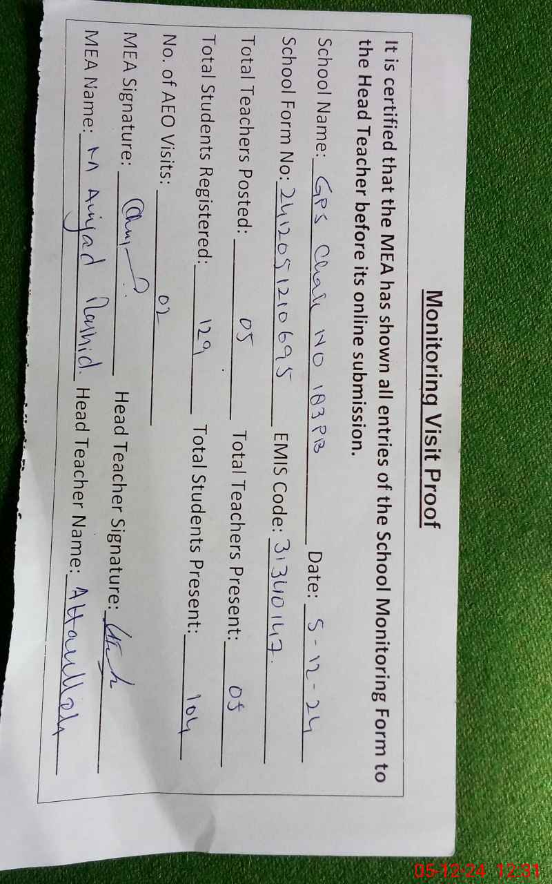 | EMIS Code: 31340147 | Name of School: GPS CHAK NO 183 PB | |||