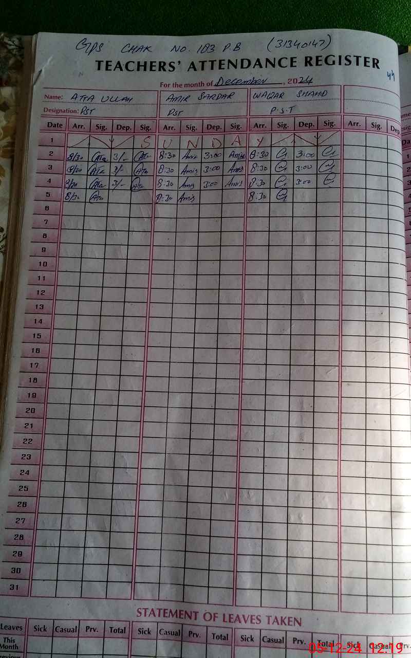 | Name: At**** Designation: (School Headmaster's/Headmistress's) PST Phone/Cell Number: 03**** |