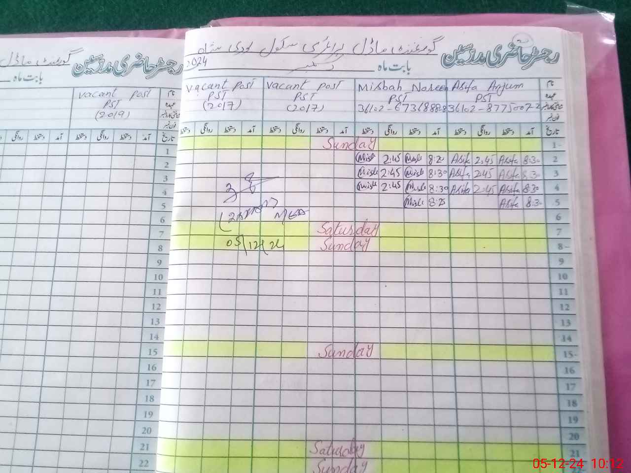| Name: AS**** AN**** Designation: (School Headmaster's/Headmistress's) PST Phone/Cell Number: 03**** |