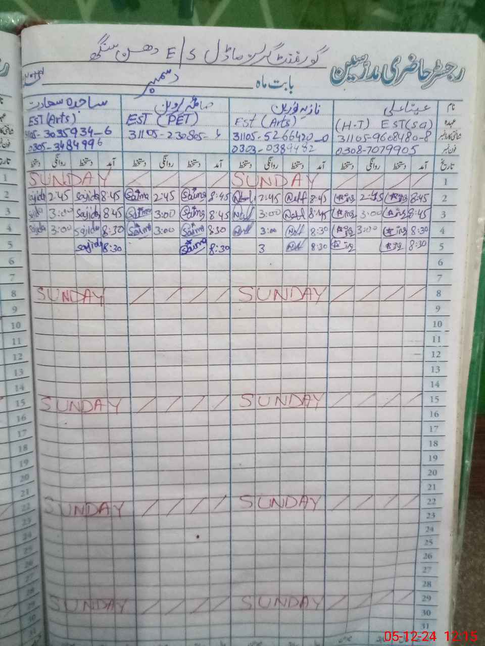 | Name: Ai**** Al**** Designation: (School Headmaster's/Headmistress's) EST Sc Phone/Cell Number: 03**** |