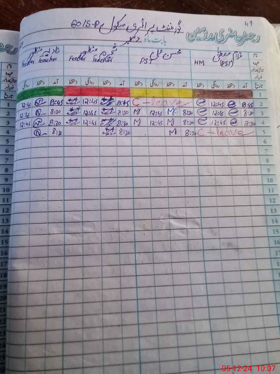 | CNIC | Full Name | Designation | R/C | Absence During Last Calender Month |