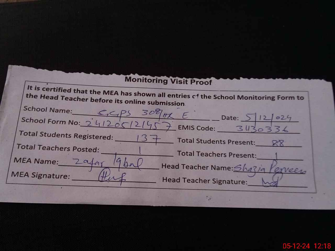 | EMIS Code: 31130336 | Name of School: GGPS CHAK 308/HR | |||