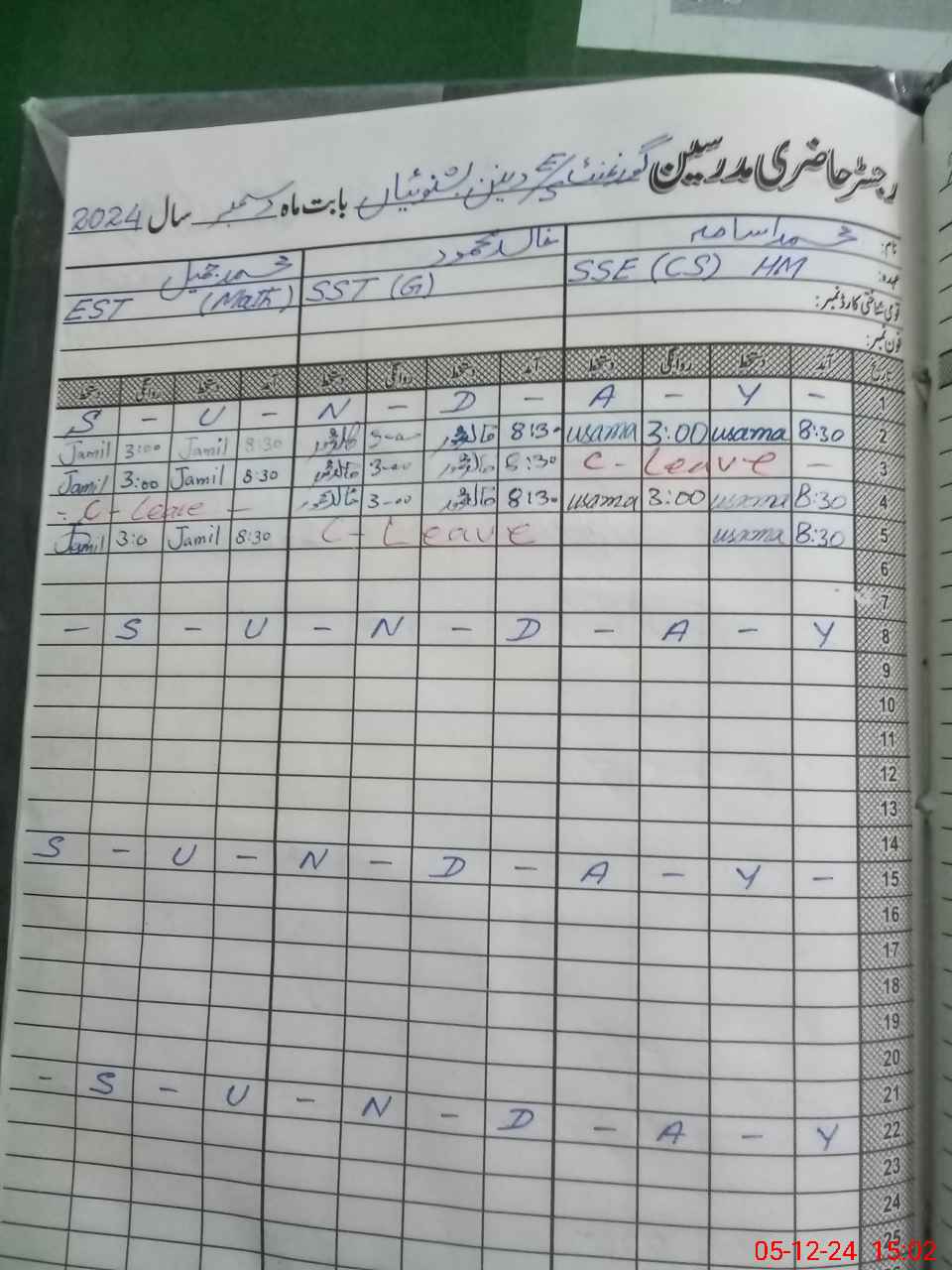 | CNIC | Full Name | Designation | R/C | Absence During Last Calender Month |